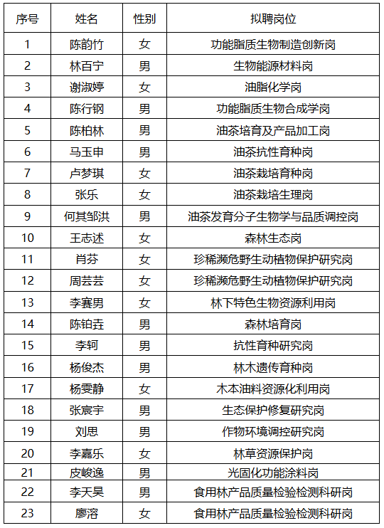 湖南省林業科學院2025年高層次人才公開招聘擬聘用人員公示